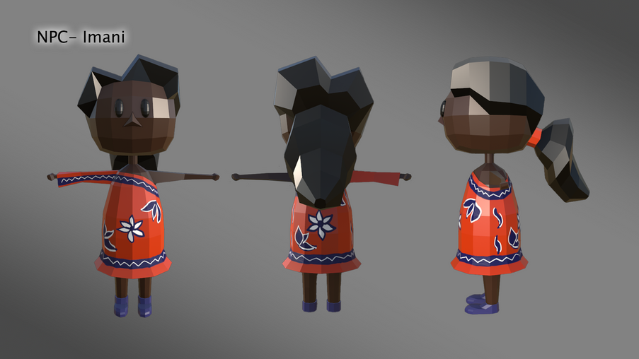 I was the Lead Character Designer for NPCs where I made the NPC models and animal assets including UV unwrapping, texture maps and animation. I gave guidance to other teammates on animation of the characters and design of animal assets to maintain the same art style. I made the dialogue for Abdul , the main NPC, for different states of quests.